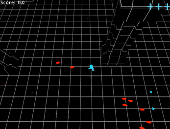 Space or Mouse Click to Shoot. While shooting you create a mirror clone that moves opposite you and shoots. You will lock your facing when shooting.